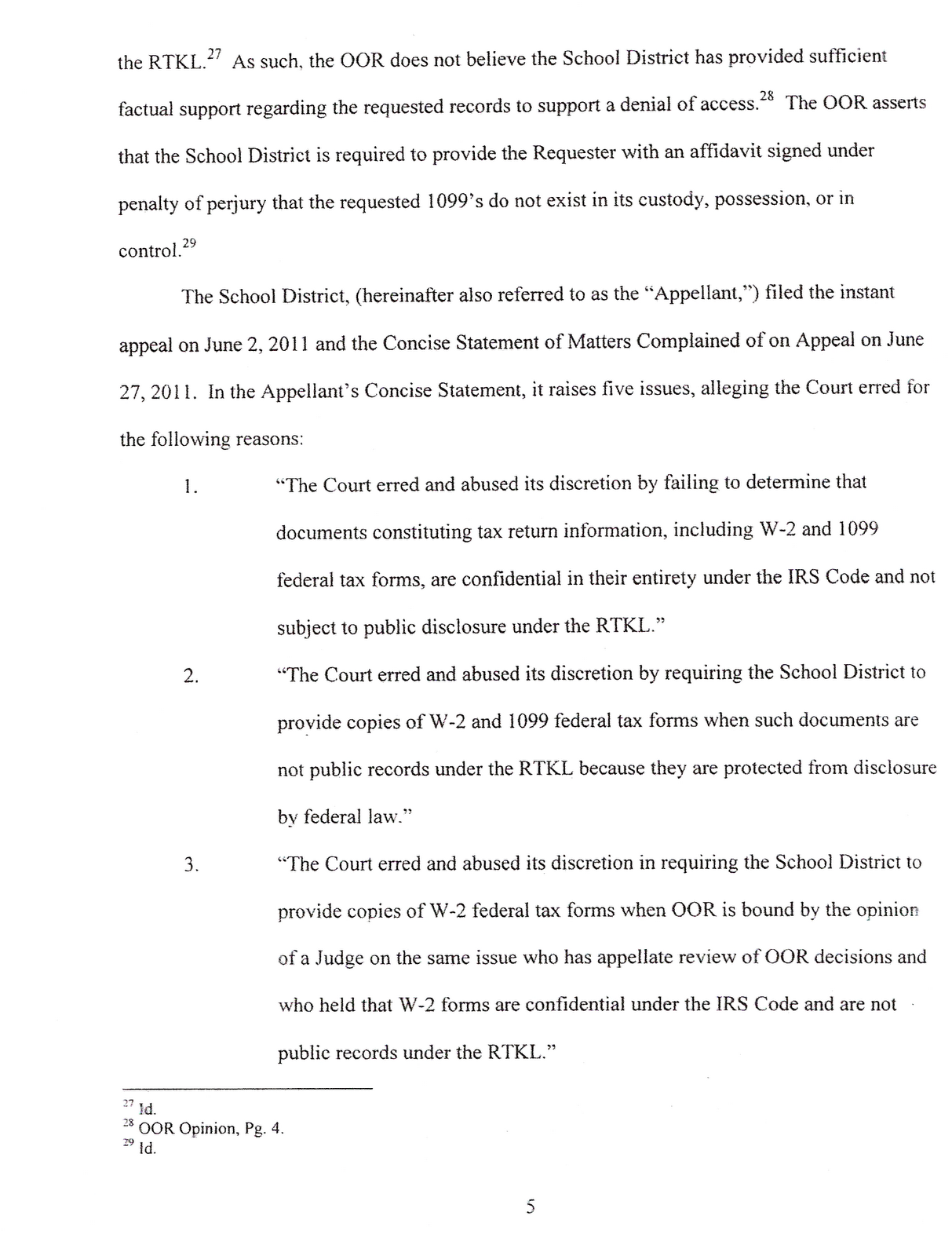 · MB&M/Fort Cherry alleges: The Office of Open Records lacks the authority to require FC to provide an affidavit stating that the 1099 forms do not exist.