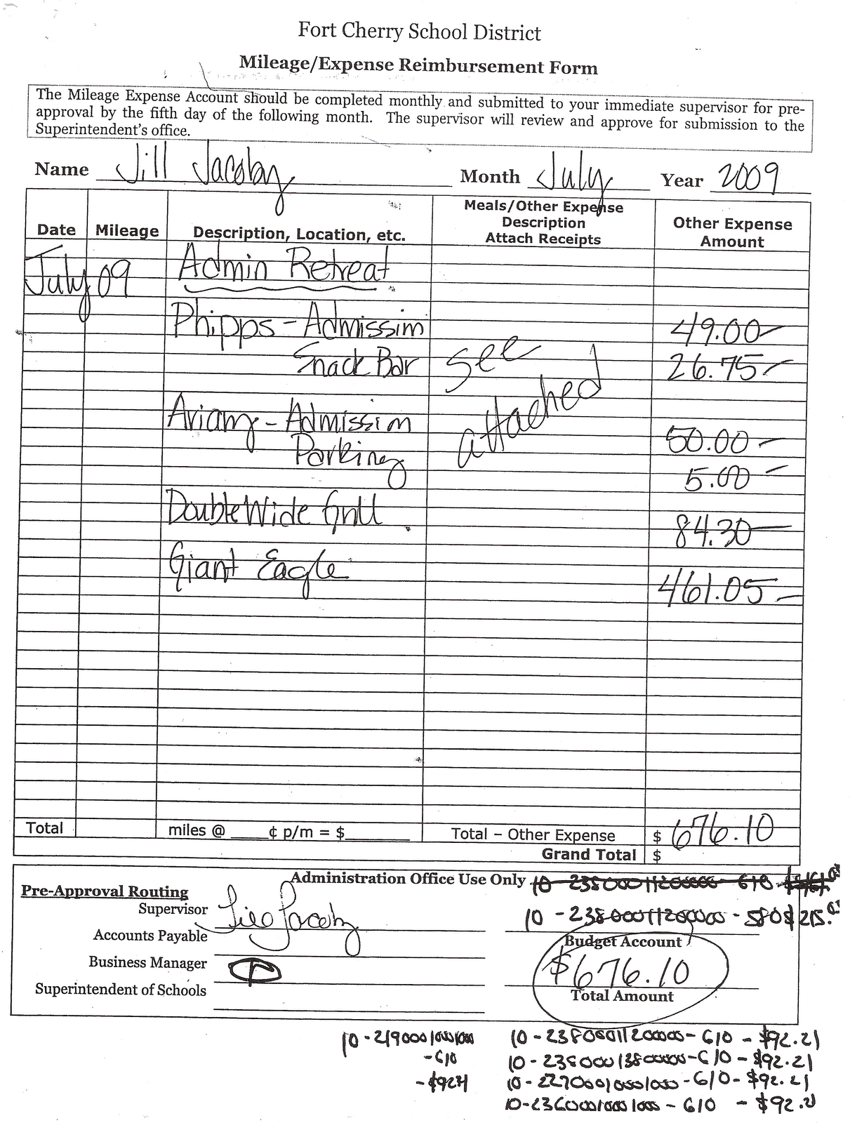 item on the reimbursement form was a $461.05 receipt from Giant Eagle.